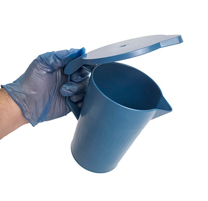 Krug und Deckel aus detektierbarem Kunststoff. metall- und röntgendetektierbar. Volumen: 1 Liter. Deckel zum Schutz for Kontamination. Deckel beweglich arretierbar. Lebensmittelkontaktgeeignet